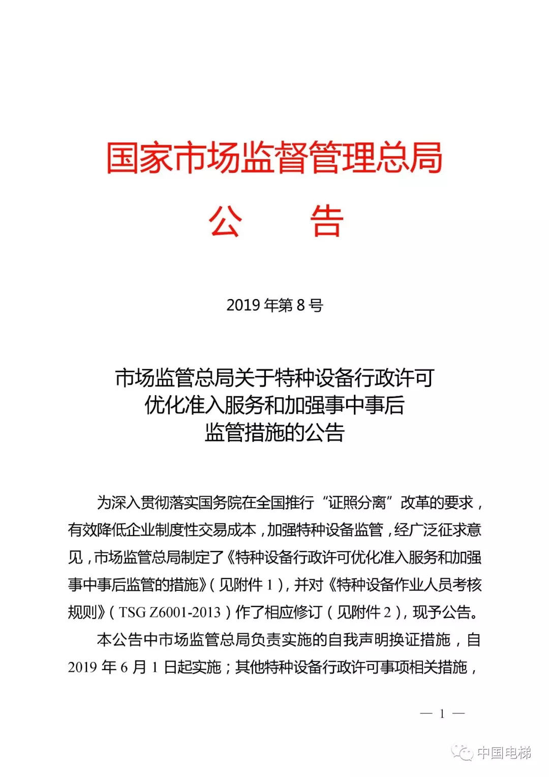市場監(jiān)管總局關(guān)于特種設(shè)備行政許可優(yōu)化準入服務(wù)和加強事中事后監(jiān)管措施的公告